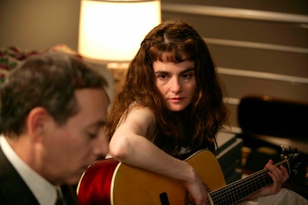 Watching all six of Solondz’s features prior to Dark Horse (including his debut, Fear, Anxiety and Depression), I was newly struck by how critical a role music plays in the work. From Welcome to the Dollhouse, with its suburban garage band’s off-kilter cover of the Stones’ “Satisfaction” and Dawn Weiner’s harrowing rendition of her school’s fight song at the end, to Jared Harris’s surprisingly touching serenade of “You Light Up My Life” in Happiness down to Life During Wartime‘s haunting interlude where Joy sleepwalks through suburban Florida to the tune of Devendra Banhart’s “Heard Somebody Say,” some of Solondz’s funniest and most lyrical moments have come through music. And while Solondz has dismissed Fear, Anxiety and Depression as a failed work due to reported lack of creative control, arguably its finest assets are the abundant musical numbers that run throughout, mostly written by Solondz, that charge the film with a giddy (if deranged) Broadway energy. His penchant for music is most explicit in his NYU student short “Feelings” where his own nasal crooning gleefully tears a new one in the old lounge chestnut.